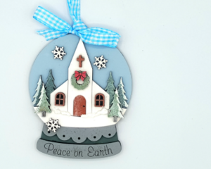Christmas Church Snow Globe Ornament | Handpainted Layered Wo...