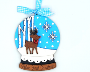 Baby's First Christmas Deer Snowglobe Christmas Ornament | Cu...