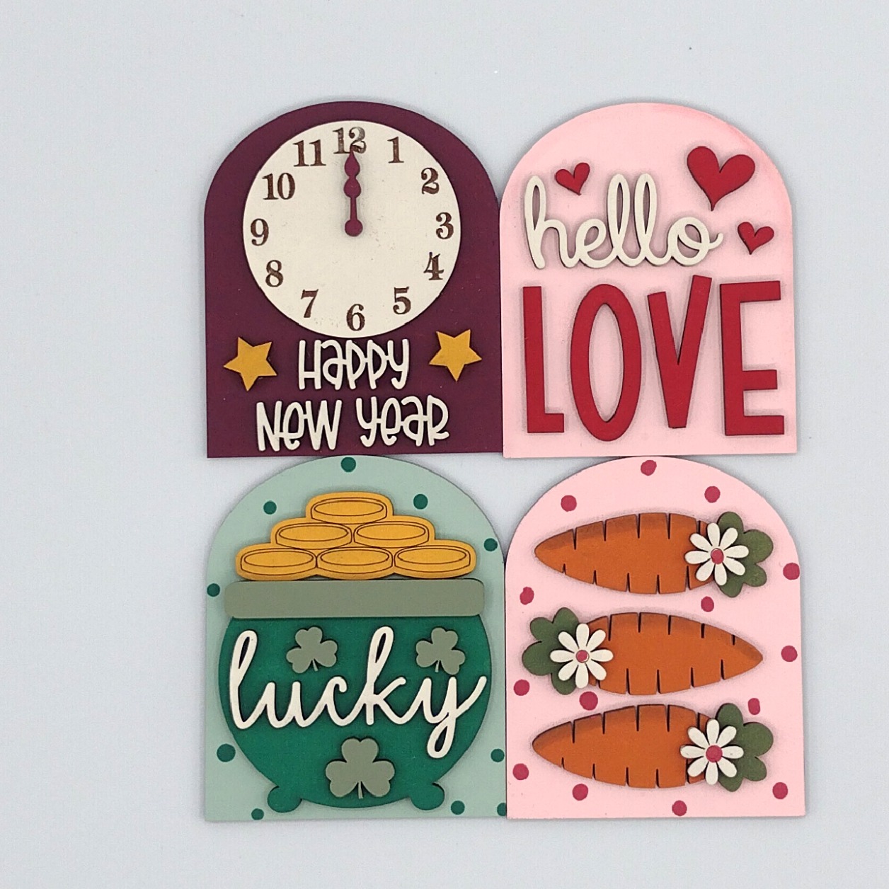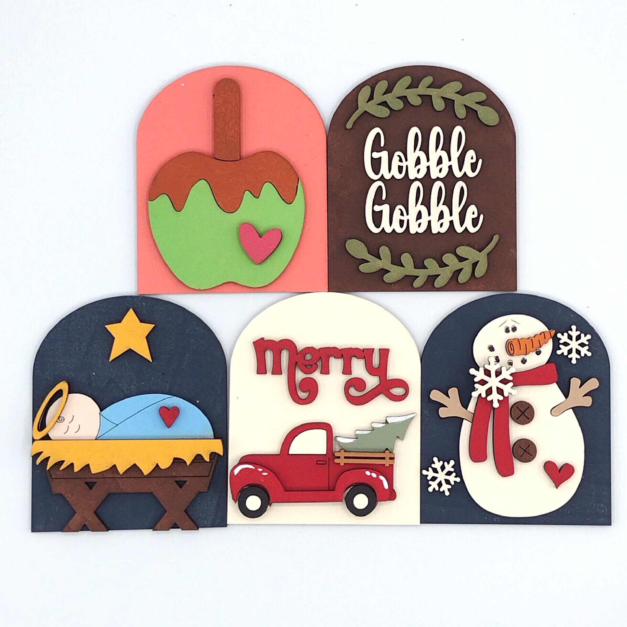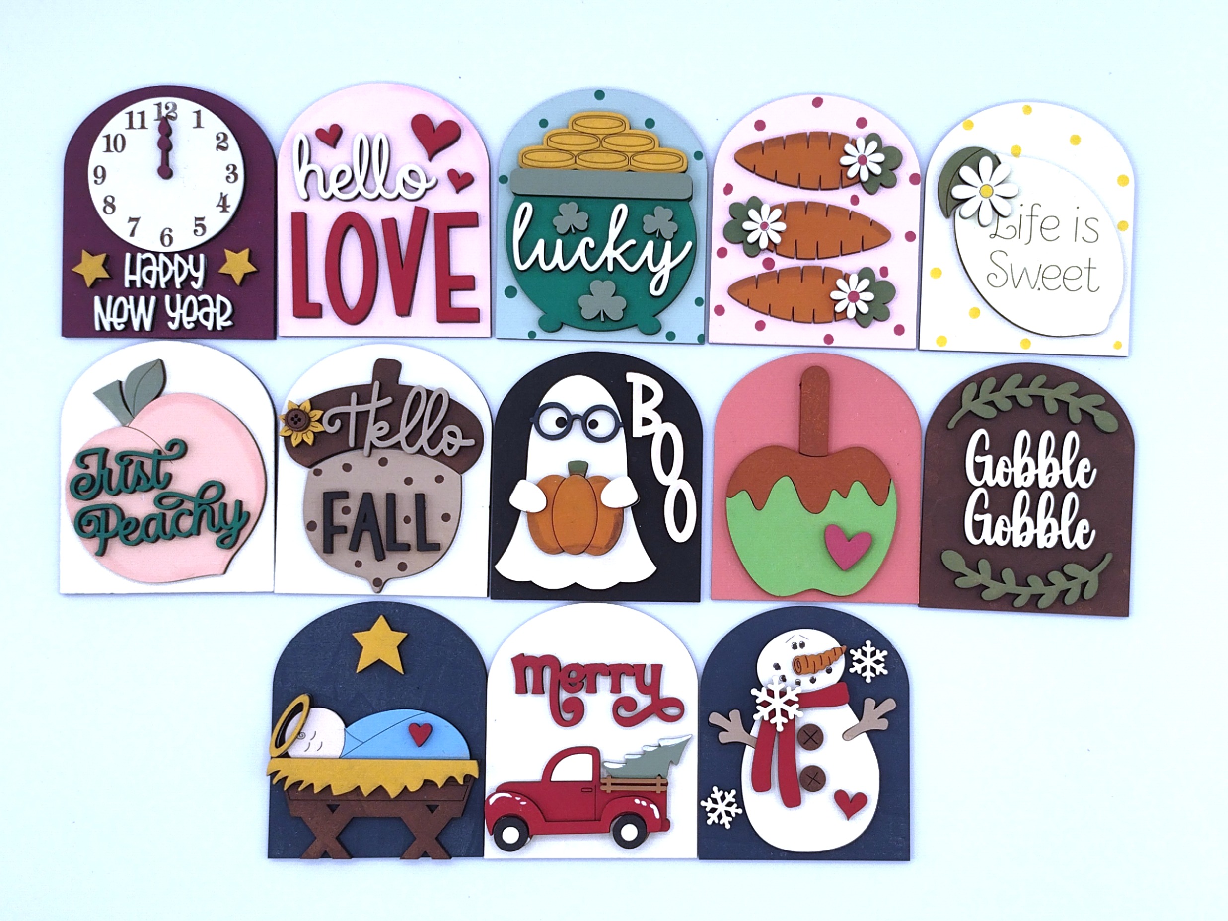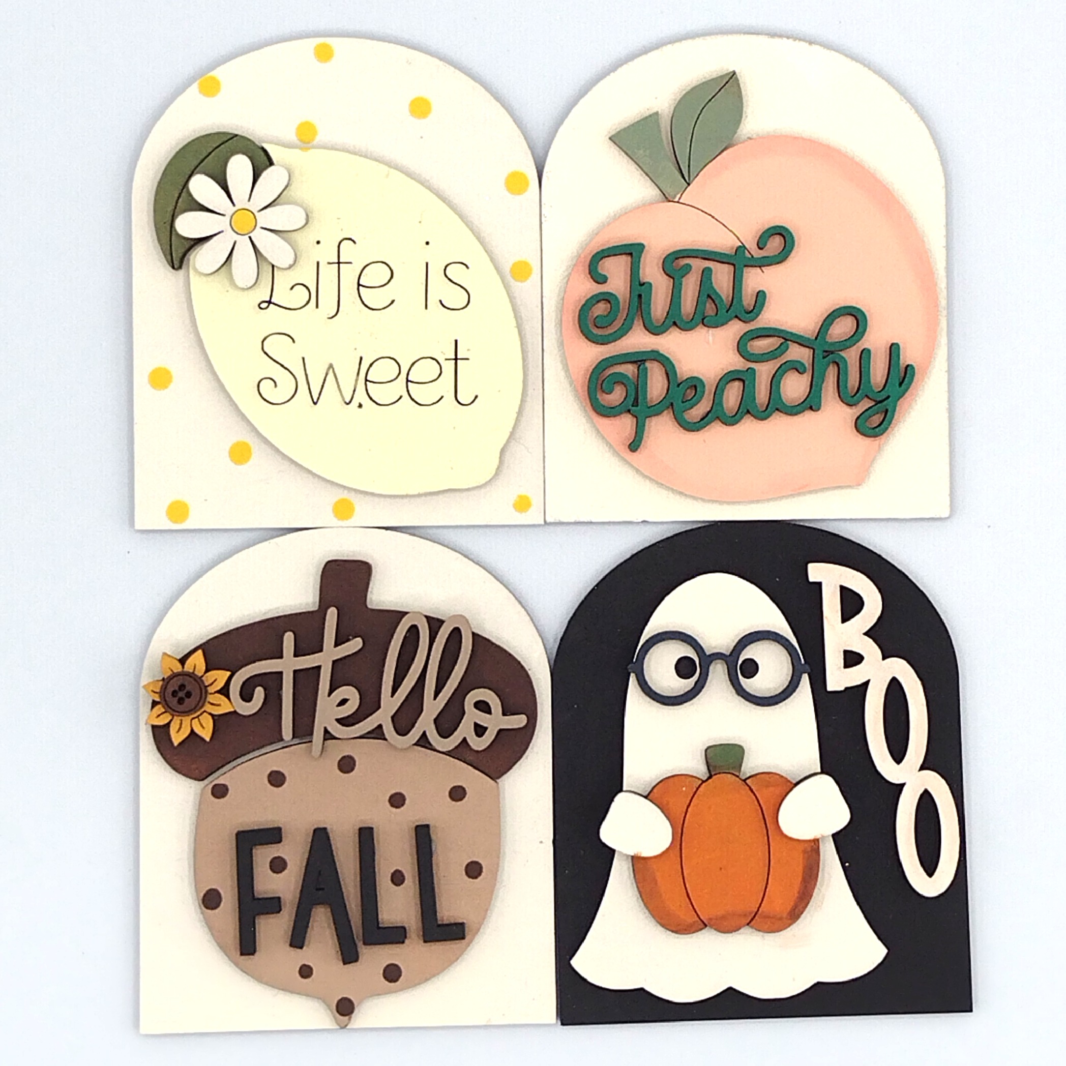 Crafted from 1/8” MDF and meticulously hand-painted, each insert offers a unique, artisanal finish that brings cozy vibes to your decor year-round. Whether you're refreshing your space for fall, winter, spring, or summer, these seasonal inserts make it easy to swap styles with the changing seasons.